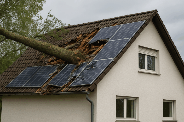 Nach einem schweren Sturm hatten sich mehrere Module vom Dach gelöst. Bei der Begutachtung wurde nicht nur der direkte Schaden an den Modulen, sondern auch die beschädigte Dachfläche dokumentiert. Das unabhängige Gutachten diente der Versicherung als Grundlage, sodass die komplette Reparaturkosten übernommen wurden.